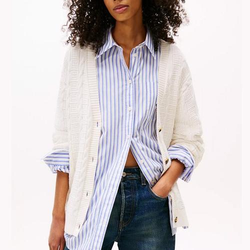 [해외배송] 타미 여성 릴렉스 케이블 니트 가디건 Off White