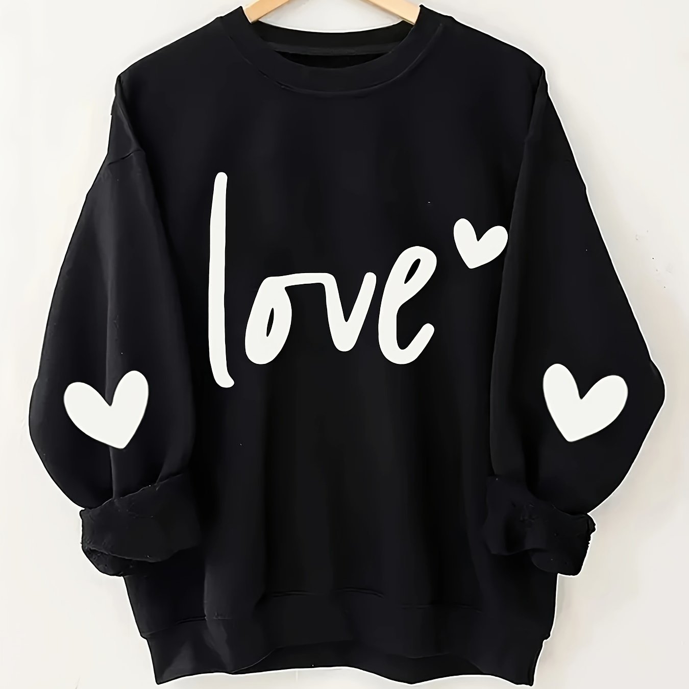 TEMU 플러스 사이즈 하트 & 레터 프린트 스웨트셔츠, 캐주얼 롱 슬리브 크루 넥 스웨트셔츠, 여성 플러스 사이즈 의류