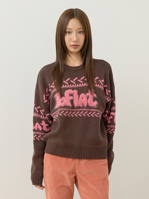 [비플랫 베네통] 패턴 라운드 니트 브라운