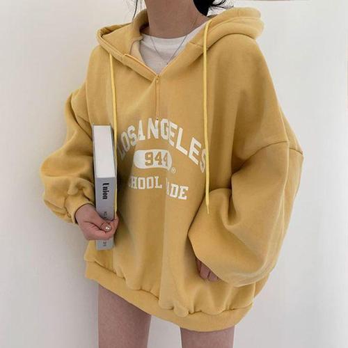 TEMU 캐주얼 여성용 후드티, 지퍼 포켓, 프린트 레터, 드로스트링 디자인, 모든 의상에 완벽하게 어울리는 제품.