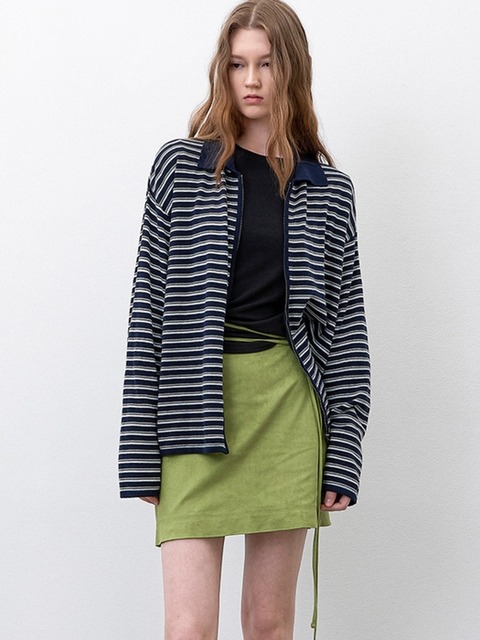 [아틀리에 나인] MULTI STRIPE COLLAR ZIP-UP CARDIGAN (CD-2250)