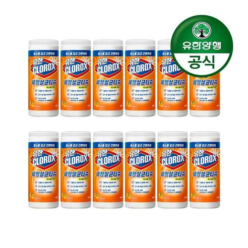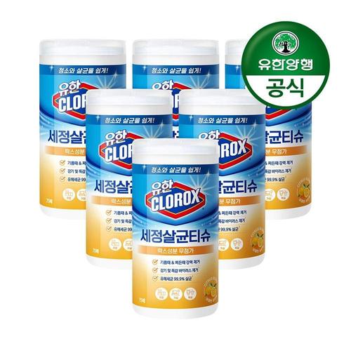유한크로락스 세정 소독 살균티슈 시트러스 브렌드 75매 x 6개