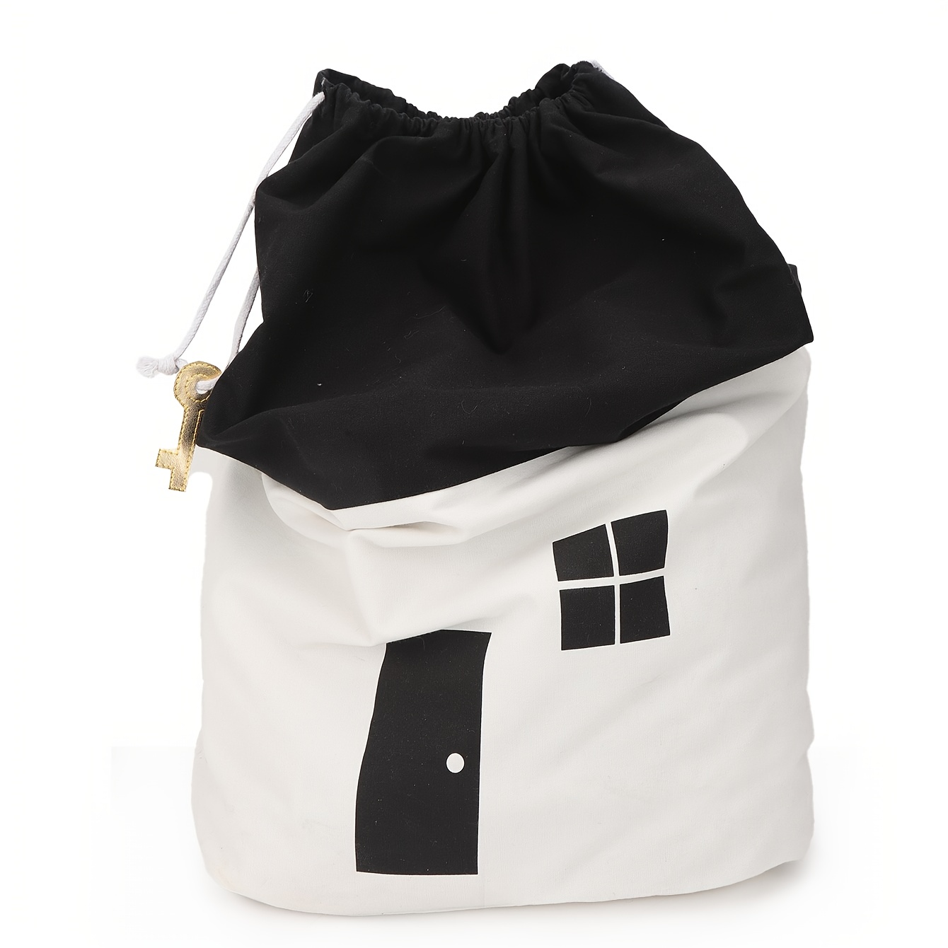TEMU 1개 귀여운 집 모양 수납 가방, 끈으로 닫힘 - 어린이 옷, 장난감 등을 위한 대용량 정리함 - 튼튼한 폴리에스터, 검정 & 흰색 디자인, 유치원이나 놀이방 장식에 완벽, 장난감 정리함 | 재미있는 디자인 | 튼튼한 원단, 장난감 수납 정리함, 장난감 정리 수납