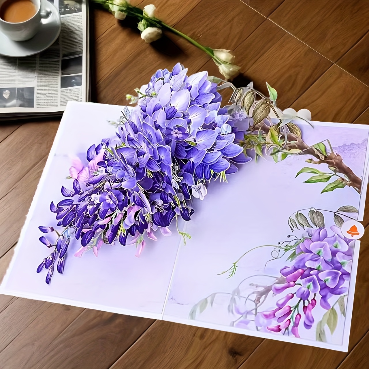 TEMU 1개 3D 팝업 등나무 가지 인사말 카드 - 생생한 파란색과 보라색 꽃 디자인에 녹색 잎 - 어머니날, 생일, 발렌타인데이, 추수감사절, 결혼식용 완벽함 - 그녀와 친구, 엄마를 위한 이상적인 선물, 특별한 날을 위한 자연에서 영감받은 디자인, 정교한 장인정신