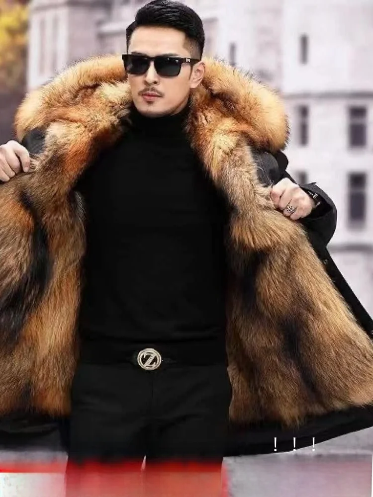 새로운 겨울 남성 롱 코트 파카 양털 안감 두꺼운 따뜻한 후드 모피 칼라 코트 남성 사이즈 5XL 플러시 자켓 가을 작업복