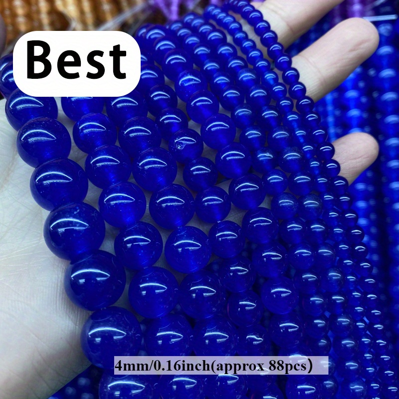 TEMU TEOWAKI 자연적인 다크 블루 자스퍼 칼세도니 원형 여유로운 비즈, 15" 스트랜드 보석 만들기, DIY 팔찌, 스페이서 비즈| 생동감 있는 블루 색상| 부드러운 다듬은 표면, 비즈 공급품