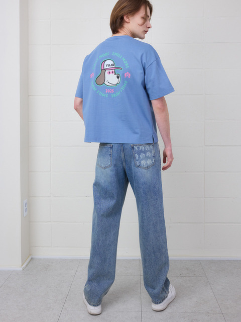 자카드 패턴 데님 바지 남성 스트레이트 피팅 헐렁한 바닥 남성용 디스트레스드 와이드 청바지