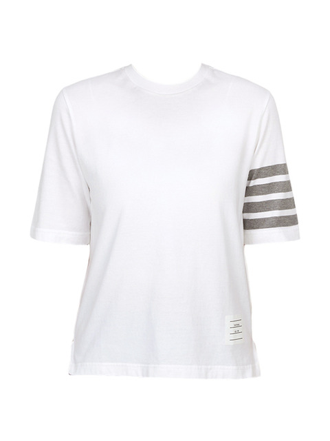 [톰 브라운] 25FW 사선 완장 숏 슬리브 티셔츠 화이트 FJS102G 07862 100