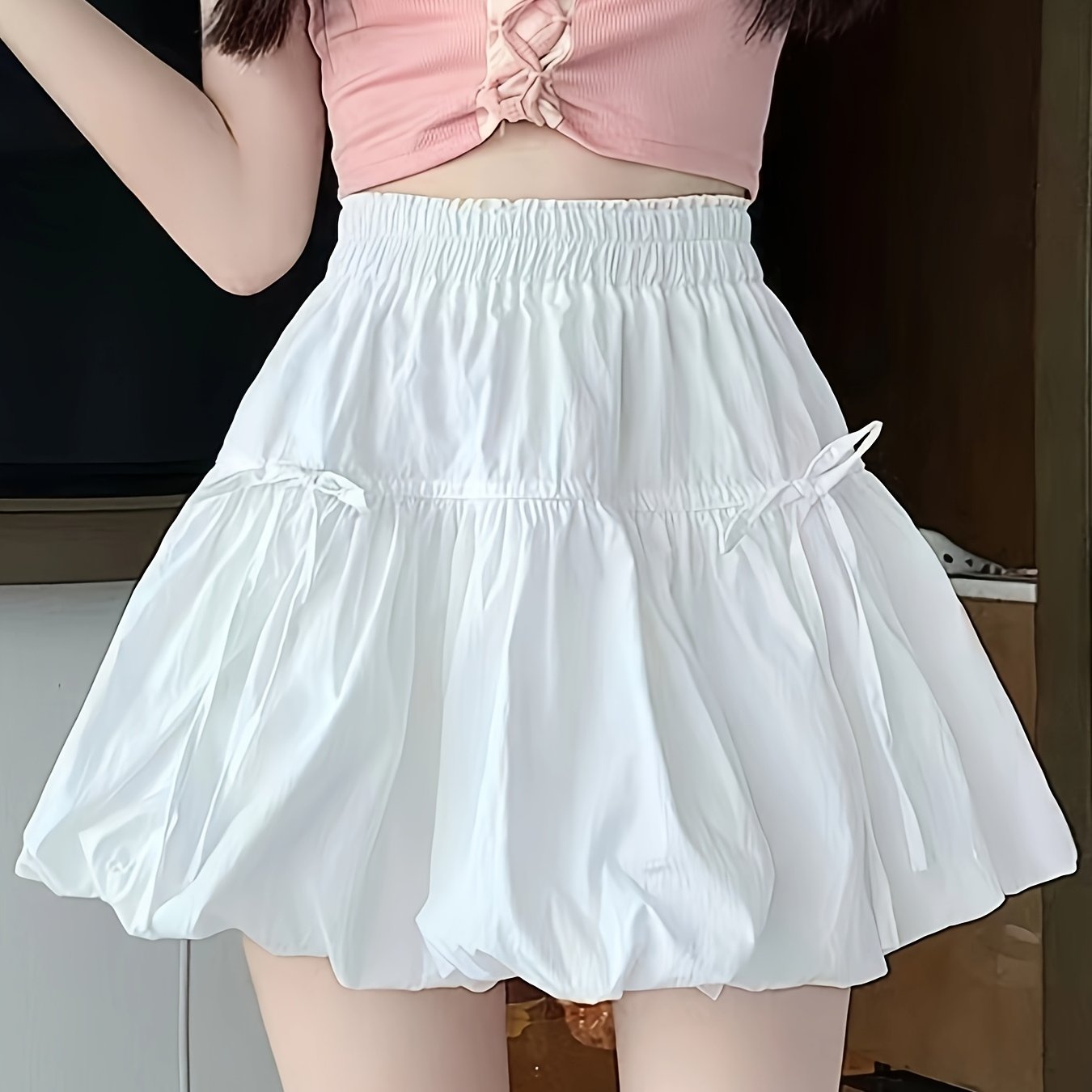 TEMU 화이트 여성용 반치마, 나비넥타이 포함, 퍼프 스커트, 스위트 하이웨이스트 봉오리 스타일 미니 스커트