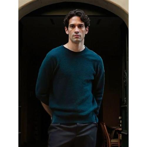 [맥케이슨]남성 캐시미어100% 등판 배색 니트 그린 MCM4SR654GRN