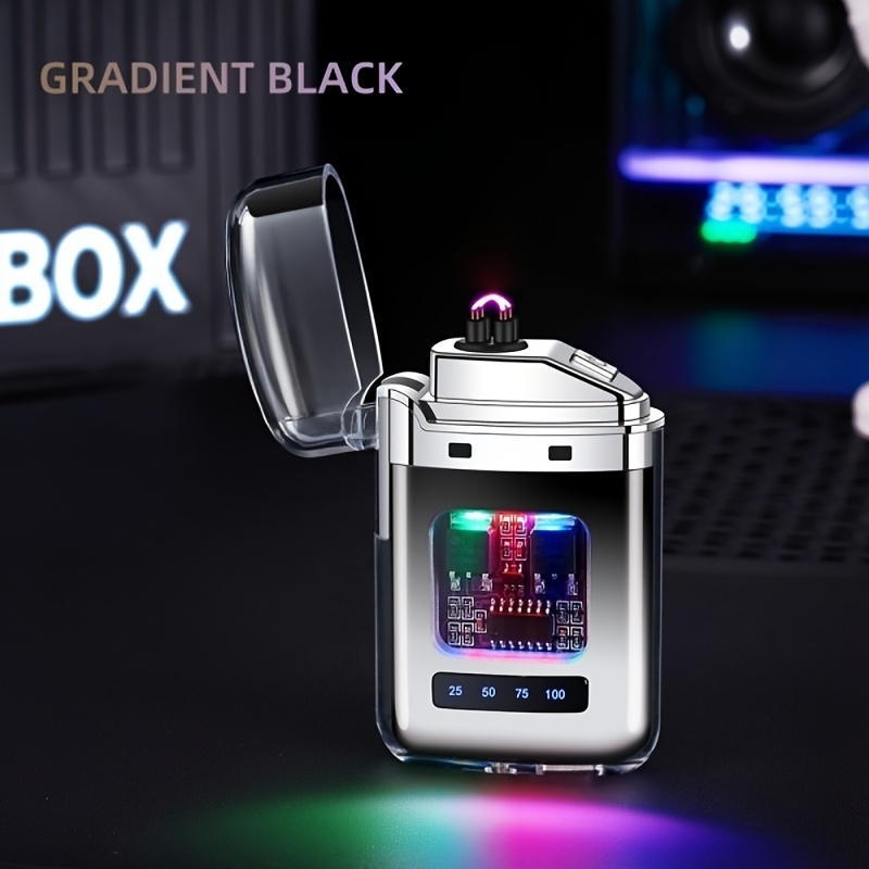 TEMU 5가지 컬러, 패셔너블 그라데이션 듀얼 아크 라이터, 펄스 라이터, 방풍 라이터, LED 전원 디스플레이, 무화염, 컴팩트 휴대용 라이터, USB 충전, 야외 캠핑, 피크닉, 여행, 아로마테라피, 생존, 비상용, 데이 선물, 생일 선물에 완벽