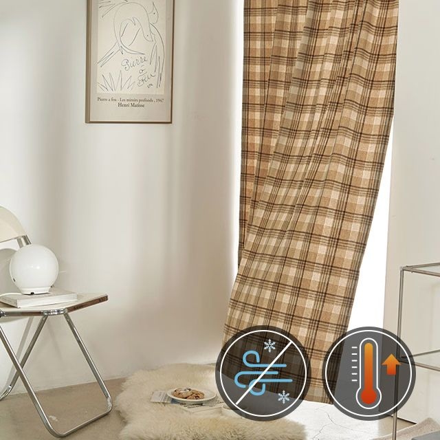 브라운체크 기모 바람막이 현관커튼