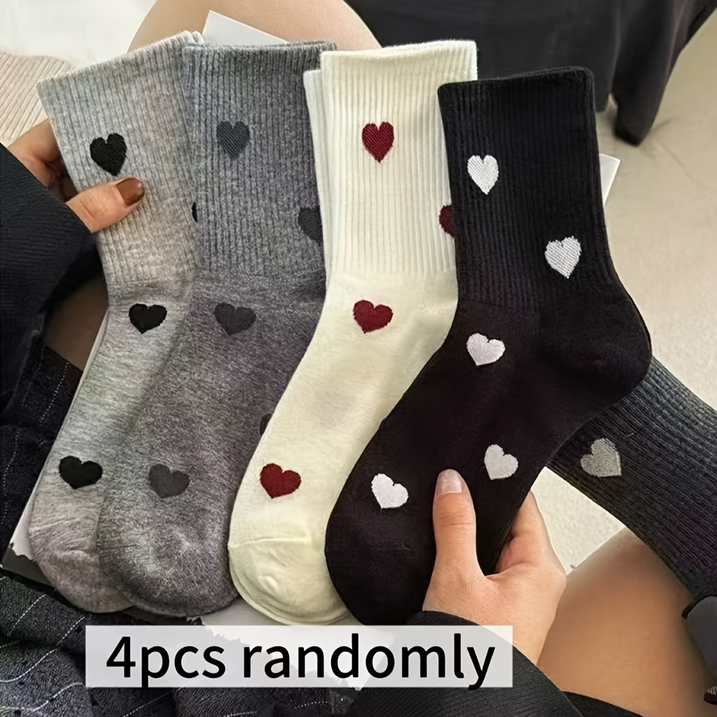 TEMU 여성용 미드컬프 양말 4켤레, 다크 컬러 시리즈 한국 스타일 귀여운 하트 패턴 고품질 다용도 발목 양말, 여성용 양말,발열 양말,할로윈 양말 여성용,크리스마스 양말,여성용 발열 양말,할로윈 양말