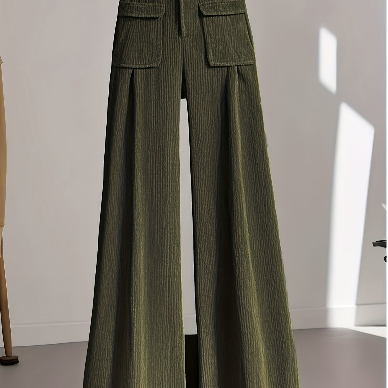 TEMU 여성용 올리브 그린 와이드 레그 팬츠 - 하이웨이스트 솔리드 컬러 드레스 팬츠 (벨트 루프 & 포켓 포함), 구조적 올시즌 우아한 캐주얼/프로페셔널 웨어, 주름 방지 (세탁기 사용 가능) 테일러드 핏