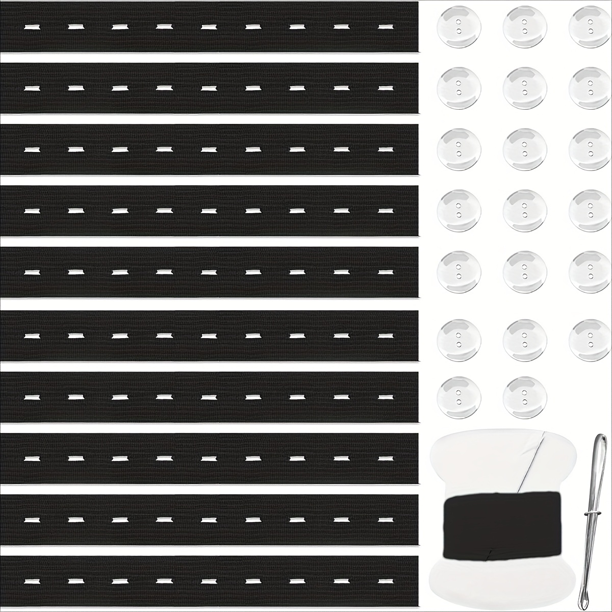 TEMU 32개 남녀 허리 조임 도구 탄성 허리 밴드 세트, 허리 밴드 조절기에 적합 - 심리스 팬츠 버클 조절기 10개 조절 가능한 탄성 팬츠 허리 밴드 + 20개 버튼 + 재봉 도구 1세트 + 실 후크 1개) 조임 도구 파