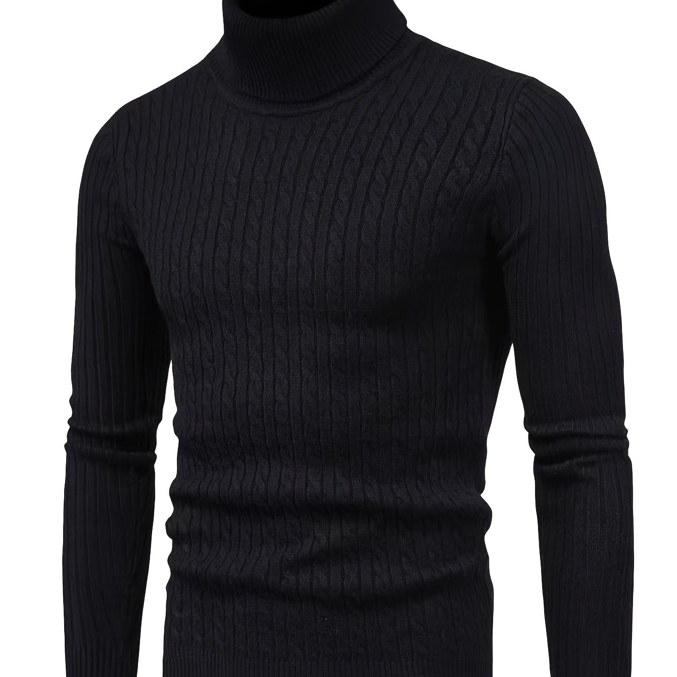 TEMU 새로운 가을/겨울 남성용 터틀넥 스웨터, 스타일리시하고 캐주얼한 디자인, 여러 색상으로 제공되며 골지 커프스와 밑단이 있습니다.