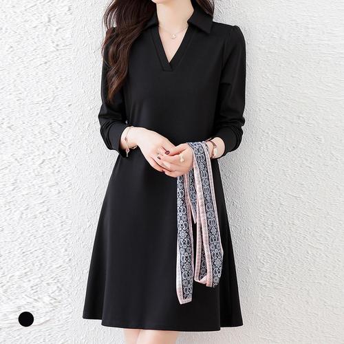 [카라]KARRA 브이넥카라원피스+스카프SET_A5S0749