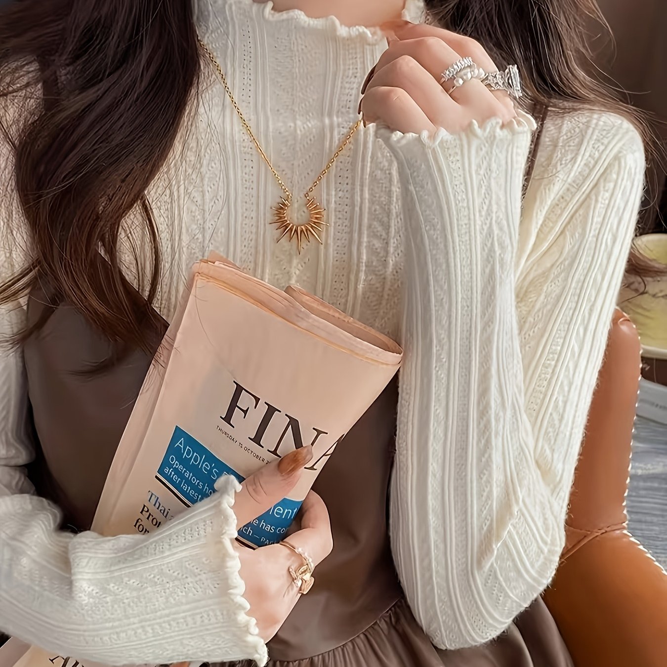TEMU 캐주얼 하이넥 골지 스웨터 | 숏, 루즈핏, 드롭 숄더, 출퇴근복, 단색