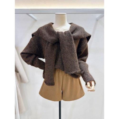 여성 부드러운 니트 투피스 V넥 루즈핏 상의 반바지 세트 겨울 데일리 홈웨어 따뜻한 세트룩