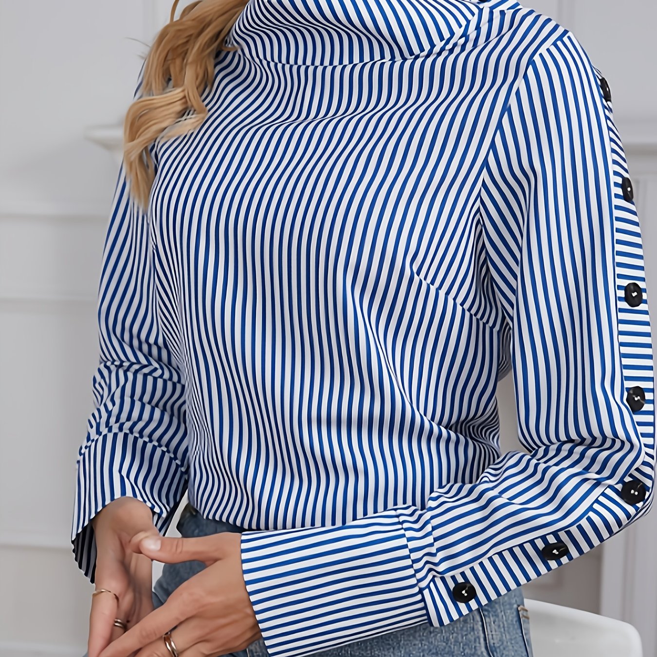TEMU 우아한 여성 셔츠 (칼라 또는 하이넥), 긴소매와 버튼 디자인