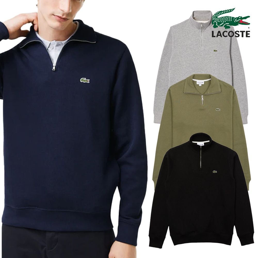 [라코스테] 하이넥 스탠드업 반집업 긴팔 스웨트 티셔츠