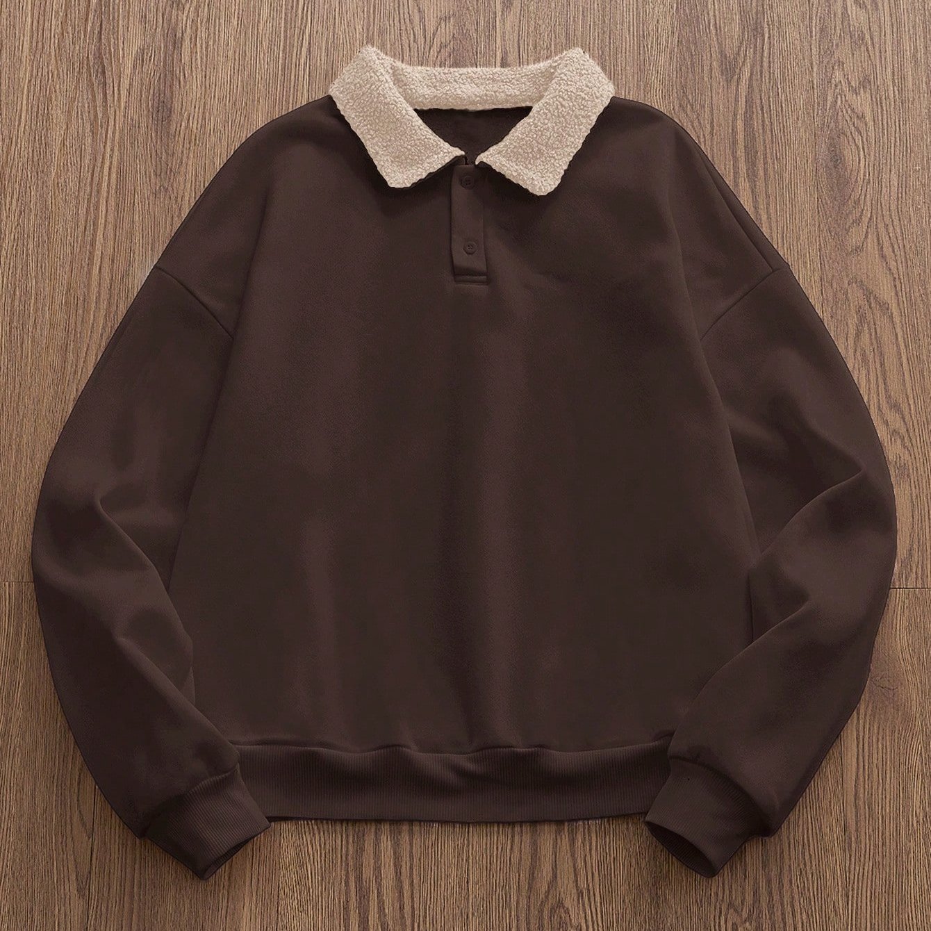 TEMU 남성용 브라운 스웨트셔츠 (칼라 포함) - 캐주얼 긴팔 풀오버, 버튼업 앞면, 레귤러 핏, 가을 & 겨울 스포티 스타일, 캐주얼 웨어|스포티 스웨트셔츠|버튼업 풀오버, 니트, 스웨터 후드티