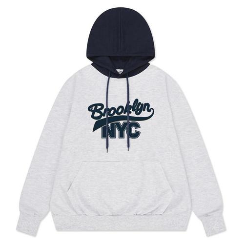 브루클린NYC 오버핏 배색 후드티 남여공용 2컬러