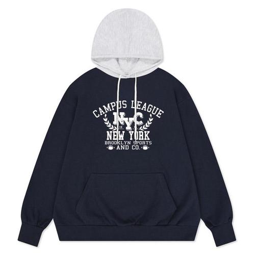 NYC1985 오버핏 배색 후드티 남여공용 2컬러