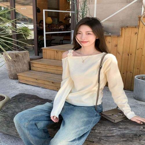 [셀럽하우스]여성 EDES8341 언벨런스 오프 숄더 여리 스타일 니트 티셔츠