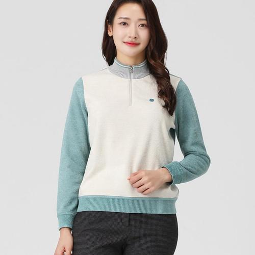 [피에이티]융본딩 컬러블럭 반짚업 스웨터 1K8343101_DG