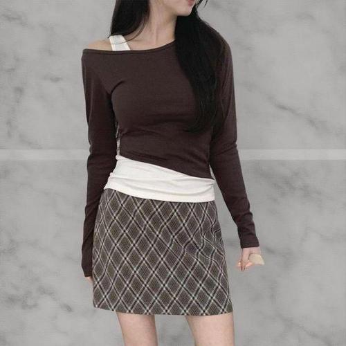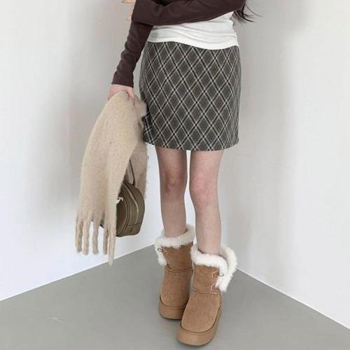 [하프클럽/]여성 격자 다이아몬드 디자인 일자 쁘띠 치마