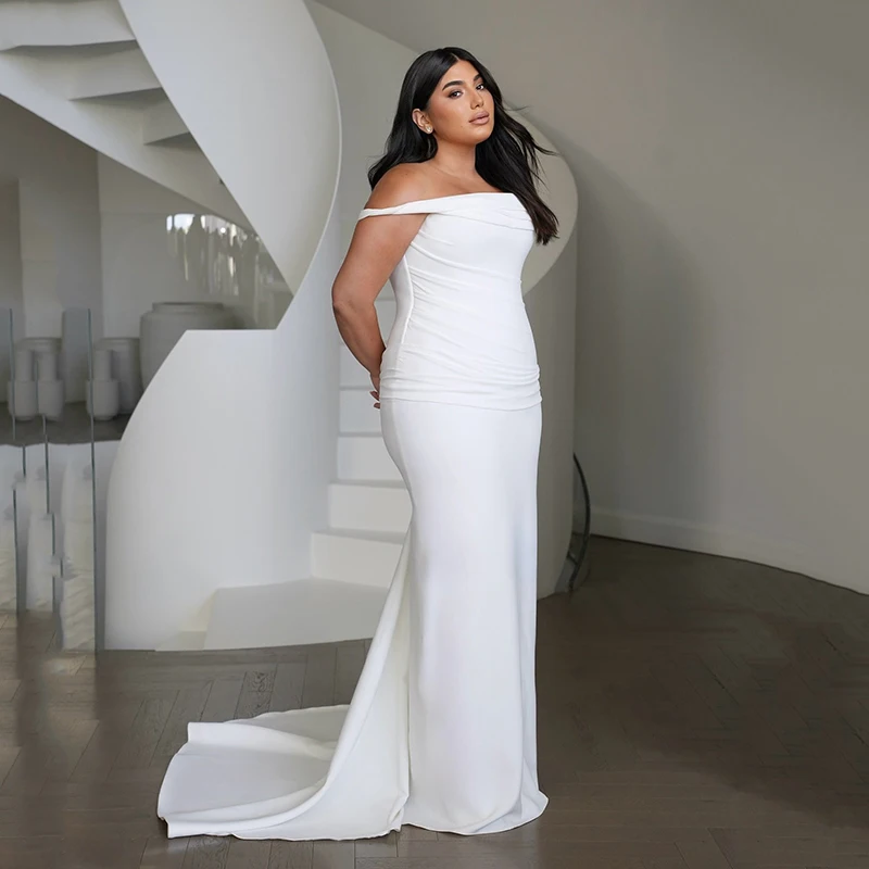 Eightree 화이트 머메이드 웨딩 드레스 2026 오프 숄더 스윕 트레인 신부 드레스 긴 저녁 웨딩 파티 드레스 맞춤형