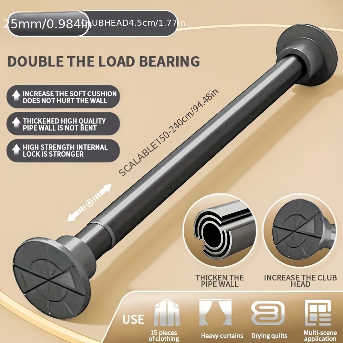 TEMU 1개 FEPK 조절 가능한 무드릴 텐션 스프링 장착 텔레스코핑 폴 - 중량용 금속 샤워 커튼 봉, 블라인드, 커튼 폴, 욕실, 옷장용 - 설치 간편, 드릴링 불필요|커튼봉|샤워커튼