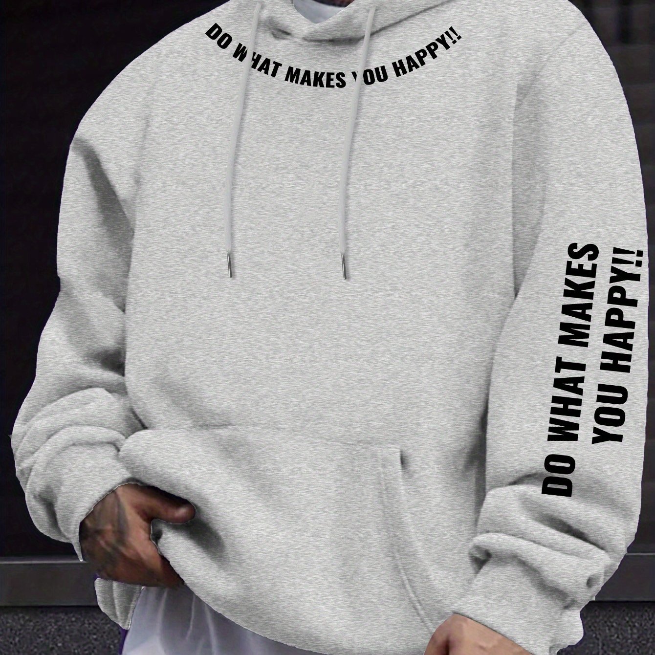 TEMU 남성용 캐주얼 후드 스웨트셔츠, 플리스 안감, 끈 조절 후드, 캥거루 포켓, 기하학 패턴, 봄/가을 착용