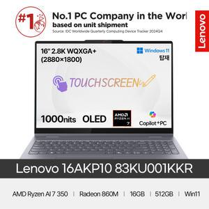 레노버 아이디어패드5 투인원 터치스크린 16AKP10 83KU002NKR (Ryzen Ai7 350/Radeon 860M/16GB/1TB/Win11 Home)
