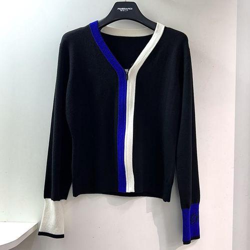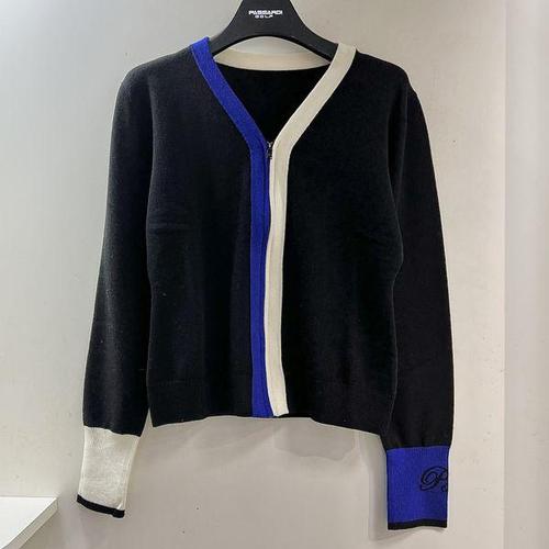 [파사디골프]배색라인 V넥 니트 집업 가디건 블랙 여성 P25SKC301S