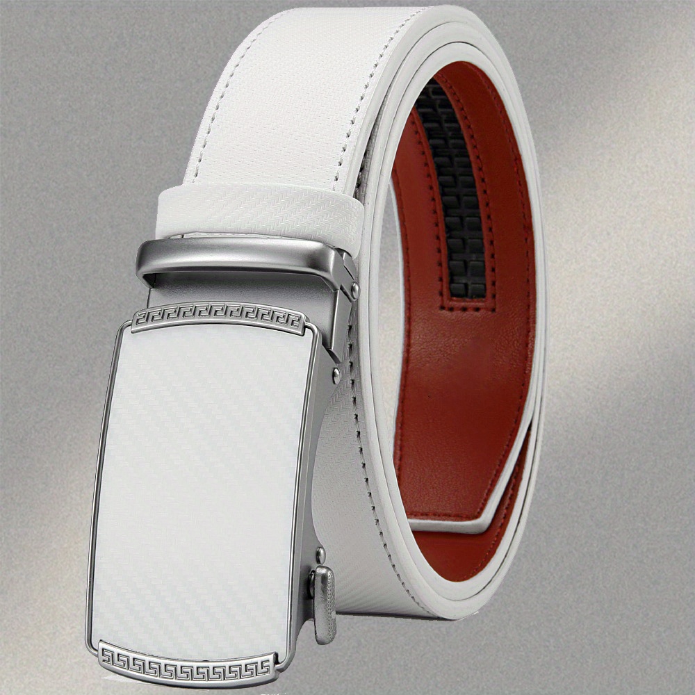 TEMU 1개 남성용 래칫 벨트 - 조절 가능한 자동 버클, 맞춤 크기 흰색 드레스 벨트, 금속 버클, 아버지의 날, 데이 및 졸업을 위한 패셔너블 선물 상자