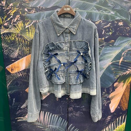 [르니앤맥코이]진주블루리본프릴크롭청셔츠MM11BL001_IC