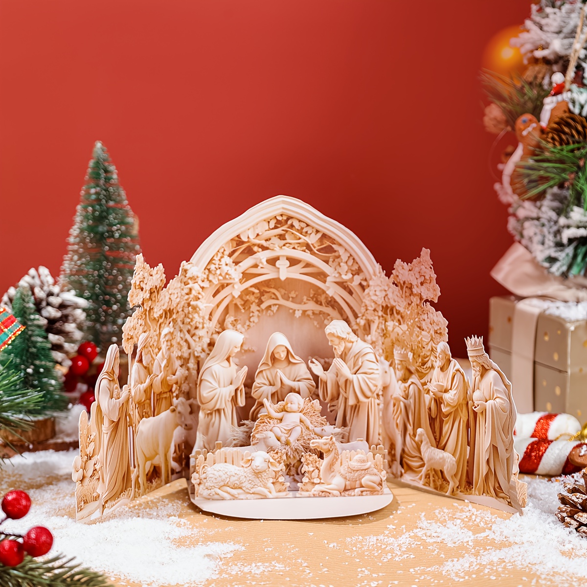 TEMU 1개 팝아웃 3D 성탄 장면 크리스마스 카드 - 팝아웃 탄생 장면 포함, 종교적 성탄 인사말 카드, 크리스마스 장식, 새해 선물, 종교 교육 및 나눔에 적합