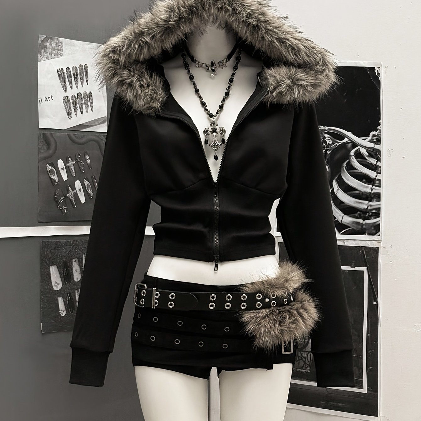 TEMU 여성용 패션 후드 스웨트셔츠, 칼라 장식 긴소매 지퍼업 후드 가디건