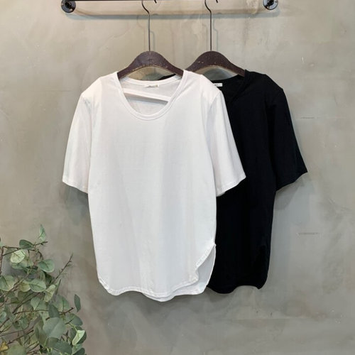 [다잇템_패션]여자 면원단 U넥 옆셔링 무지반팔티 티셔츠