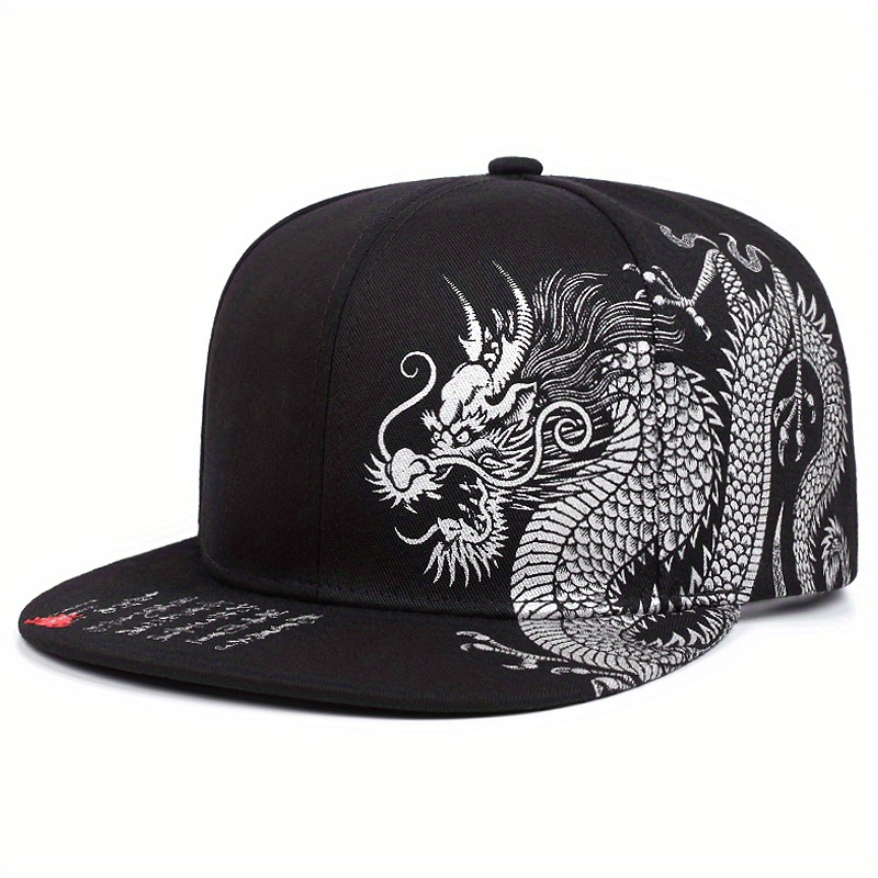 TEMU 남녀공용 레드 드래곤 자수 스냅백 플랫 브림 캡