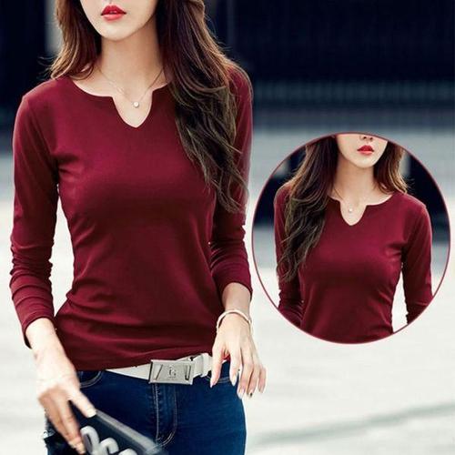 [다잇템]여자 딥브이넥 민무늬 큰사이즈 코튼 티셔츠