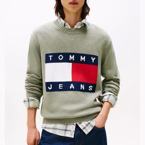 [해외배송] 타미 남성 인탈시아 로고 스웨터 Sage Heather