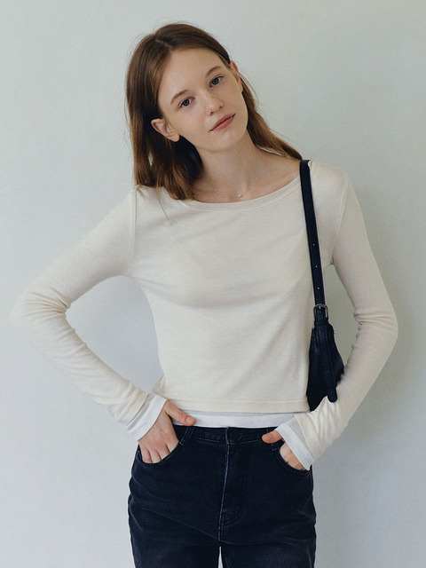 [로에일] 더블 레이어드 울 티셔츠 - 아이보리