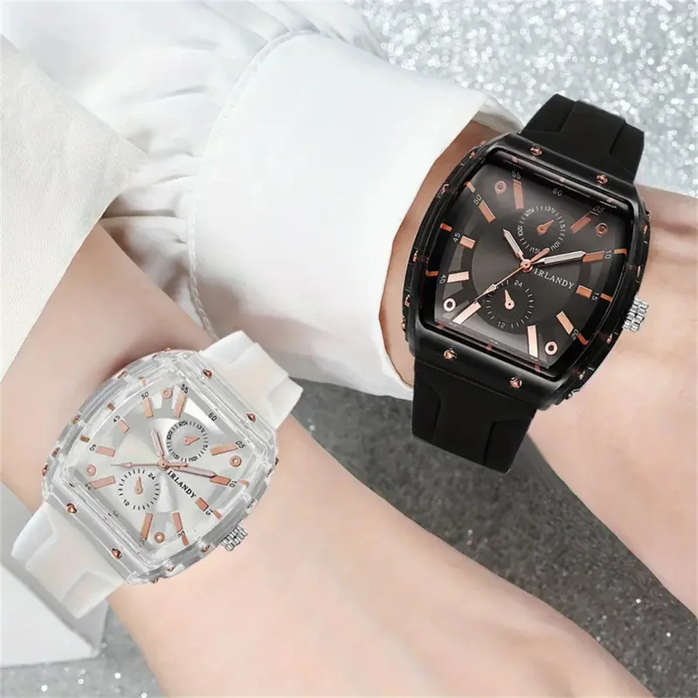 2개/세트 패션 스퀘어 여성용 시계 가죽 밴드 쿼츠 시계 하트 팔찌 세트