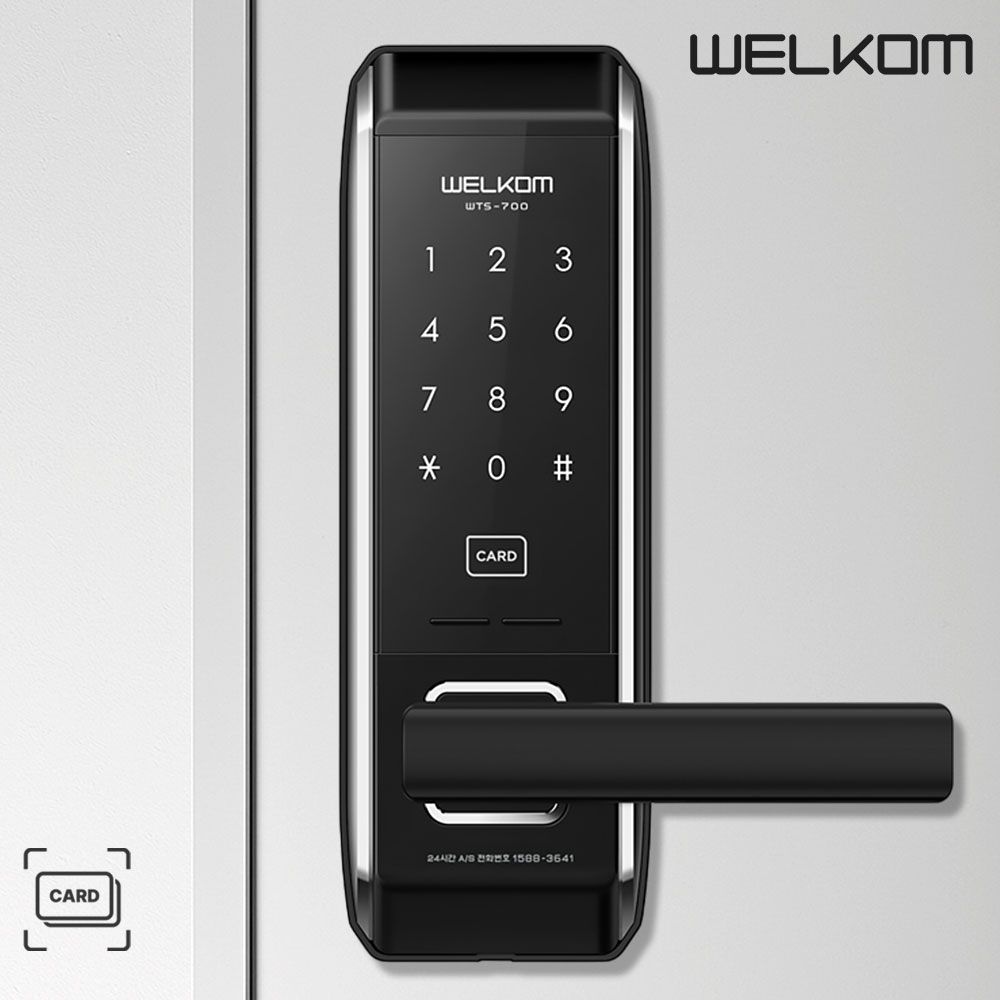 웰콤 스마트 손잡이 있음 도어락WTS-700 + 보강판 + 카드키 4p