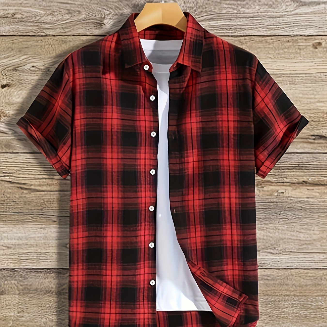 TEMU 클래식한 체크 패턴과 편안하고 통기성 좋은 컬러 블로킹 스타일이 특징인 독특하게 디자인된 반팔 셔츠