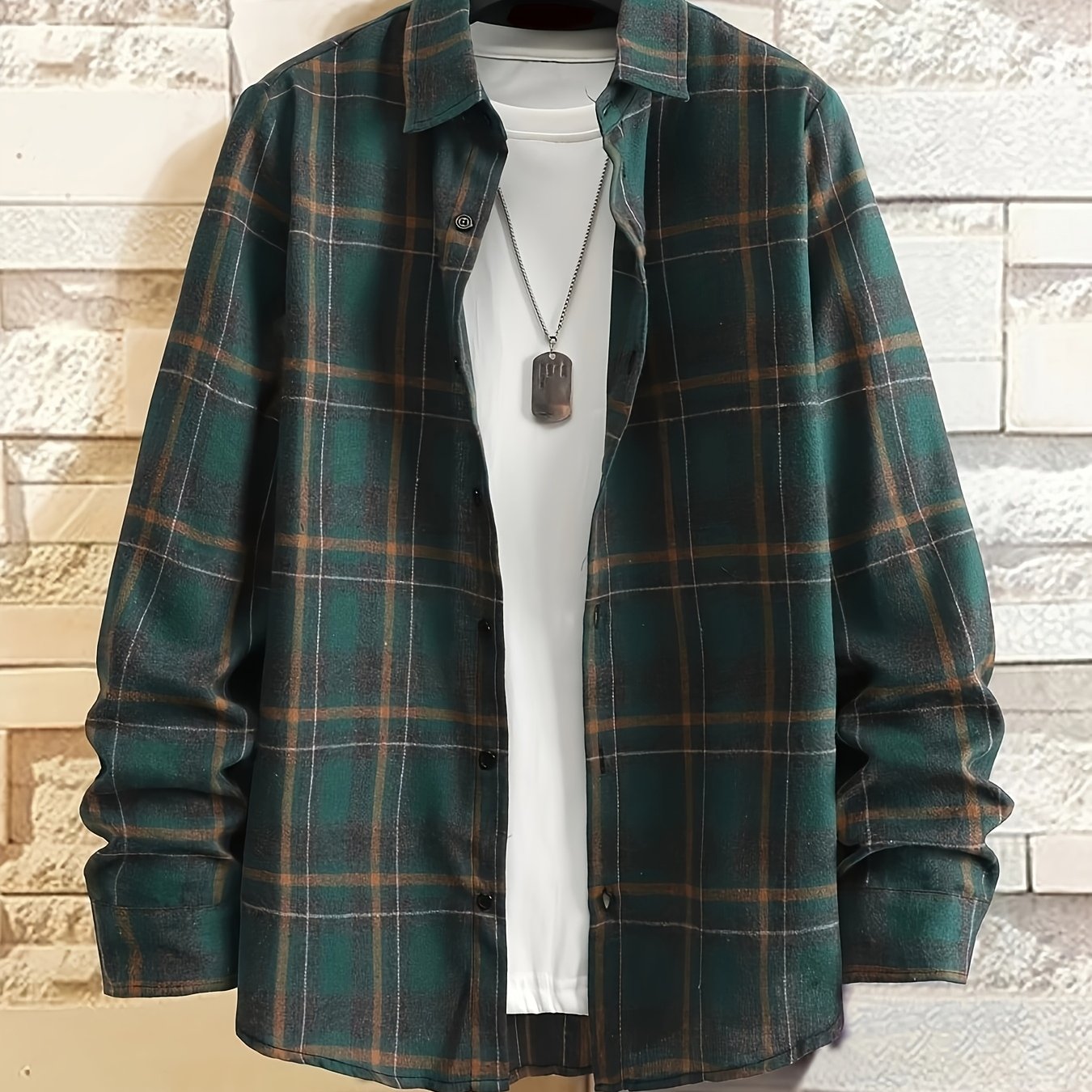 TEMU 남성용 긴팔 패션 체크 캐주얼 셔츠, 100% 폴리에스터 소재, 데일리 아웃팅, 비즈니스 이벤트, 휴가 활동, 데이트 복장에 적합