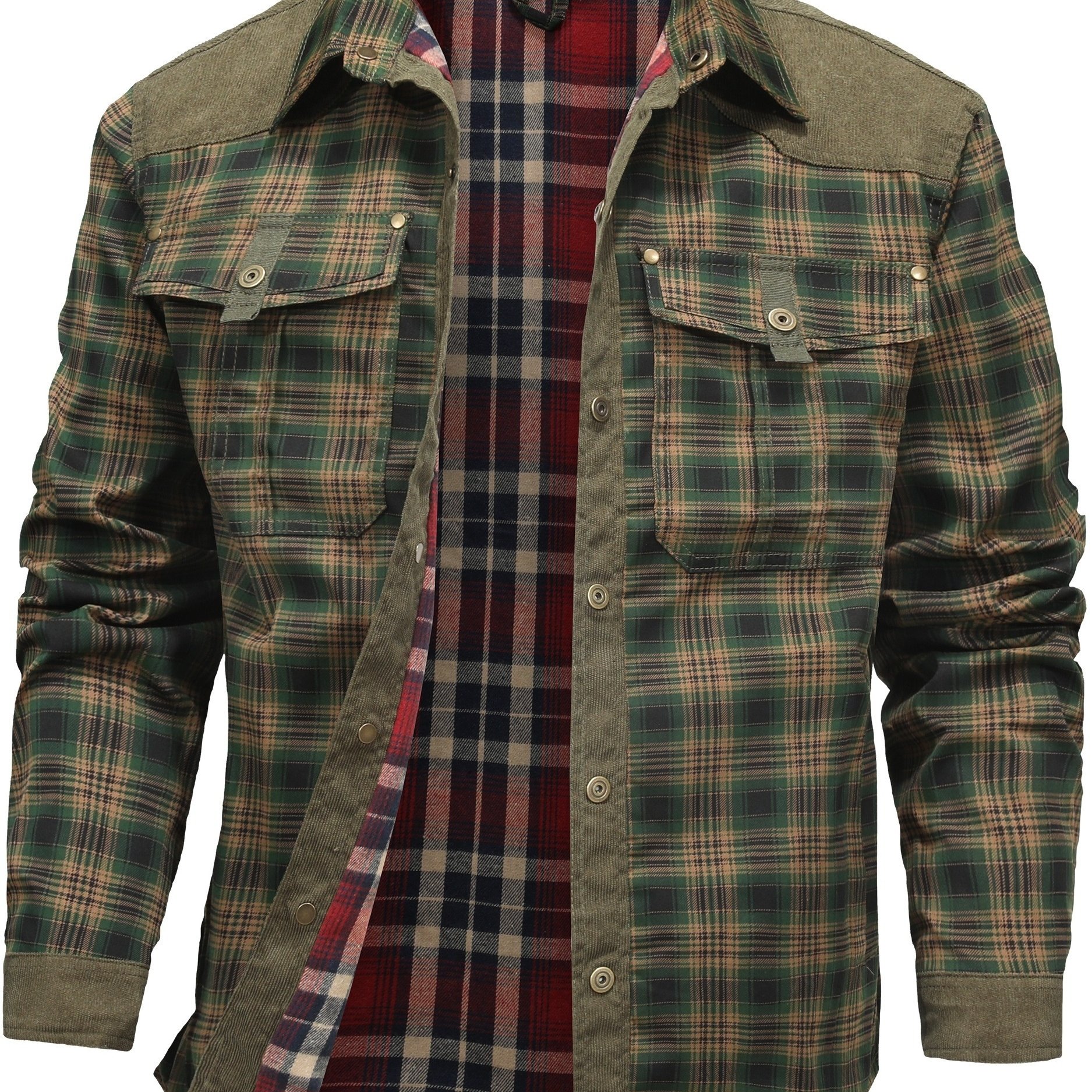 TEMU 남성용 체크 플란넬 셔츠 재킷 - 플리스 안감, 따뜻하고 스타일리시, 컬러 블록 단열 체크 코트, 추운 날씨에 적합, 남성용 따뜻한 플리스 뒷면 재킷, 트렌디한 룩, 두꺼운 단열 겨울 체크 셔츠 재킷